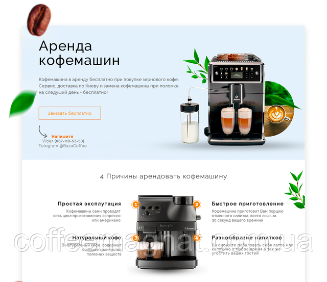 Ми пропонуємо послуги по здачі в оренду кавомашин для барів, ресторанів та кафе. Завжди в наявності великий вибір техніки для приготування кави. Комфортні умови співпраці. Машини тільки оригінальної якості.